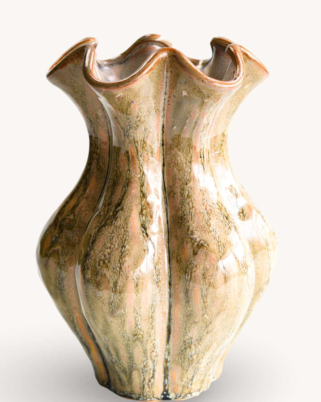 Vaas Laura is 19x19x25cm hoog en heeft een prachtige glazuur.